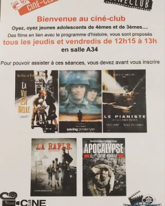Désormais, un club de cinéma existe au collège. Les élèves peuvent découvrir des films et en débattre…ou tout simplement savourer :)